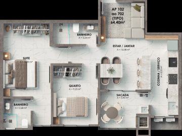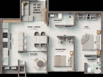 • Área Privativa: 64m²